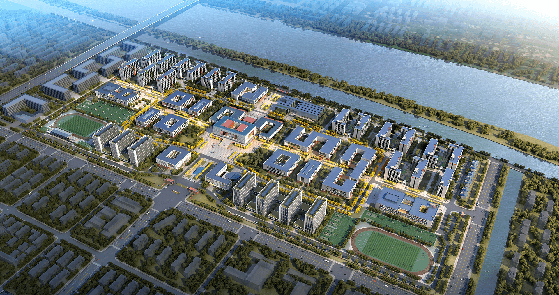 主要包含系科樓、圖書(shū)館、學(xué)生宿舍樓、生活服務(wù)中心等建筑。新校區(qū)建成后可滿足20000-25000名學(xué)生正常的教學(xué)、生活等需求