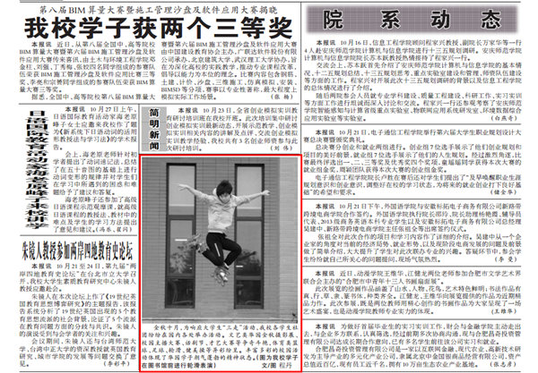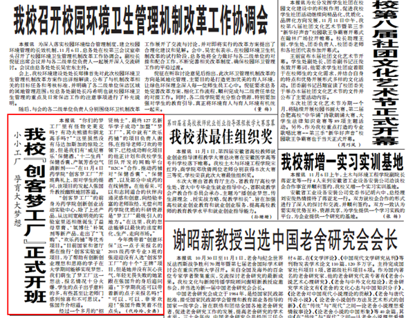 9月22日,從中國高校校報(bào)好新聞評(píng)委會(huì)傳來喜訊,《安徽新華學(xué)院》報(bào)4件作品獲2015年度中國高校校報(bào)好新聞獎(jiǎng),其中二等獎(jiǎng)3項(xiàng),三等獎(jiǎng)1項(xiàng),為歷年最好成績(jī)。